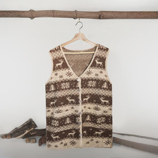 Adult Yak Wool Cardigan - Reindeer Print